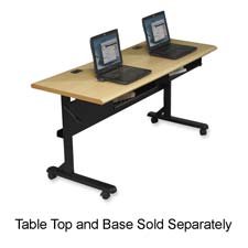 Use adjustable tabletop and base to create multipurpose work areas in conference rooms, training rooms, or in offices. Table can be raised to an upright position by simply releasing a lever. Once raised, table can be easily rolled out of the way and nested together for space-saving storage. Tabletop has a 1-1/4" thick radium edge top for years of durability. Base includes perforated modesty panel, integral cable trough, desktop grommets, steel construction with powder-coat finish, and 2" casters (two locking) for mobility. Steel base fits flipper tabletop. Top and base are sold separately.